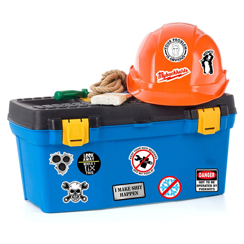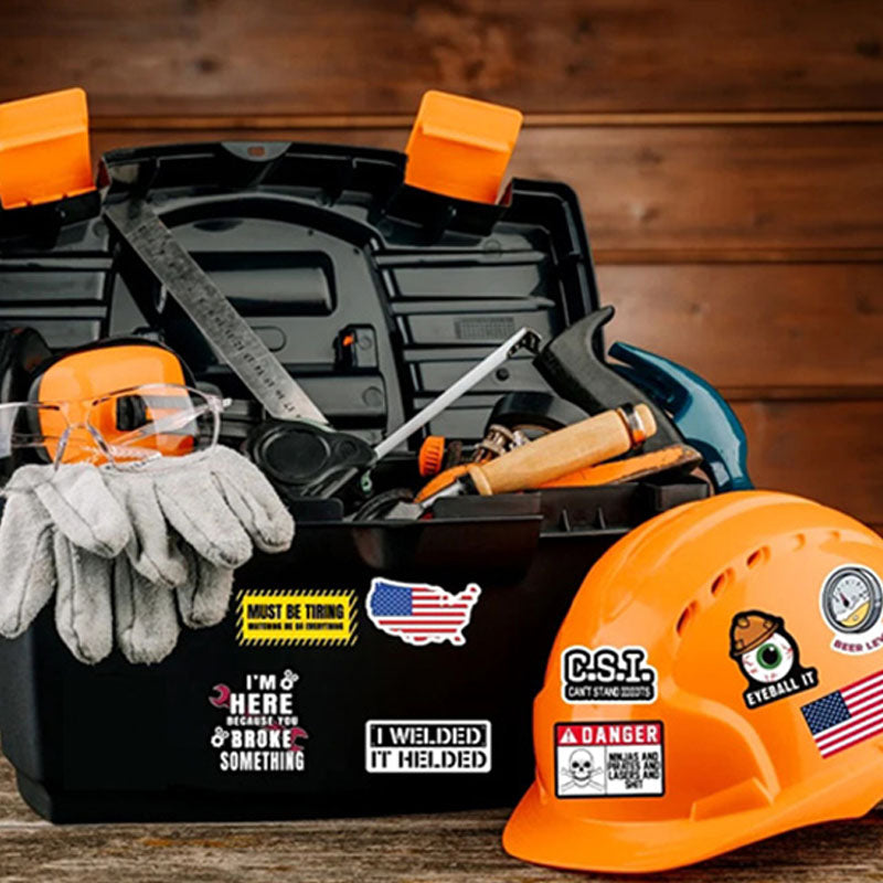 MULTI-FUNCTIONAL USE: These stickers adhere to most smooth surfaces such as hard hats, toolboxes, helmets, cars, toilet surface and more. They are versatile and can be used for labeling various items.