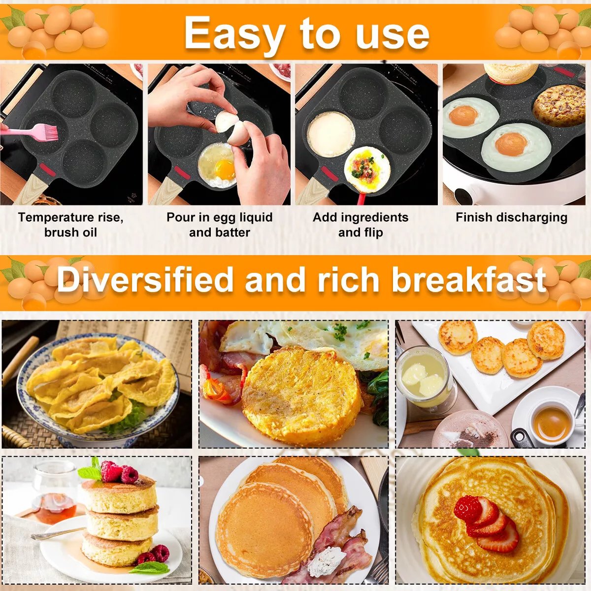 By combining eco-friendly materials with convenience and style, our 4 Egg Frying Pan is the perfect addition to any home kitchen. Enhance your cooking experience today!